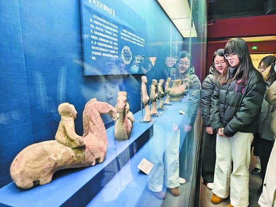 缓步展厅,尘嚣渐远,唯余岁月沉淀的沉静与庄严。东汉镂空龙虎纹铜染炉,形制精巧,纹饰灵动,尽显汉代匠心,再现王侯仪轨,为馆中镇馆之宝;红土山汉墓出土西汉玉具剑,剑首、剑格、剑璏、剑珌四件俱全,完好无损,雕工遒劲,气韵沉雄,代表着汉代治玉工艺的巅峰造诣;北齐造像刊经碑,刀法古拙,书风雄健,文中存见早期简化字实例,兼具宗教、历史、书法多重价值;元代白釉黑花开光禽纹四系罐,器形雄浑,画意奔放……