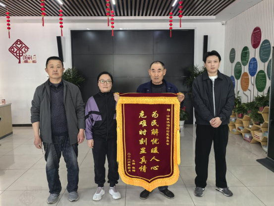 4月13日,一面写着“为民解忧暖人心 危难时刻显真情”的锦旗送到沙家洪沟村、洪沟社区及洪沟家园物业工作人员手中。