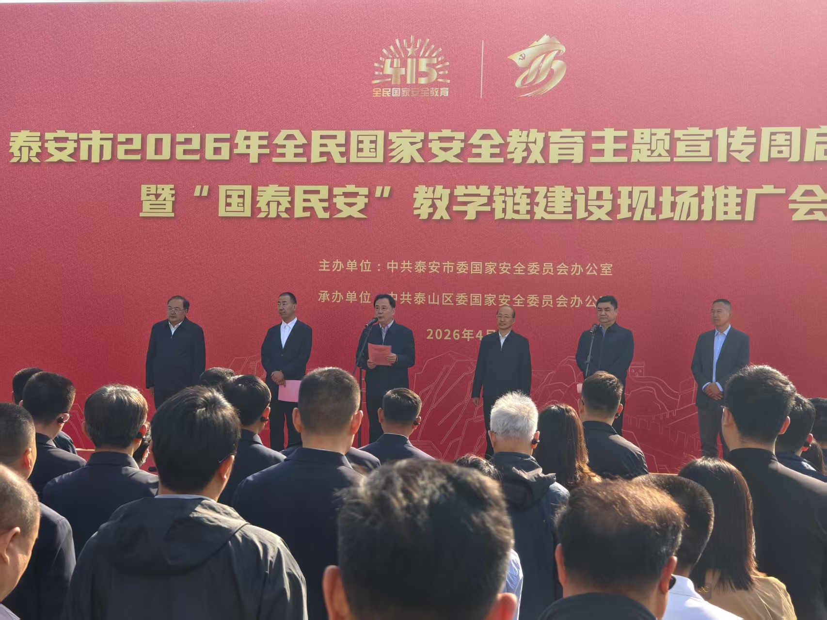近年来,泰安市始终把国家安全工作摆在全局发展的核心位置,坚定不移贯彻总体国家安全观,创新打造“国泰民安”国家安全宣传教育现场教学链,深度整合全市58处现场教育教学资源,构建6条市级现场教学链、16条县级现场教学链,以串珠成链的模式推动国家安全宣传教育走深走实、见行见效。常态化开展丰富多彩的国家安全宣传教育“七进”活动,进一步深化国家安全知识的普及,提升全民国家安全意识,全力营造“国家安全、人人有责”的浓厚宣传氛围,将总体国家安全观落实为守护万家灯火的坚实行动,在全社会形成维护国家安全的强大合力。