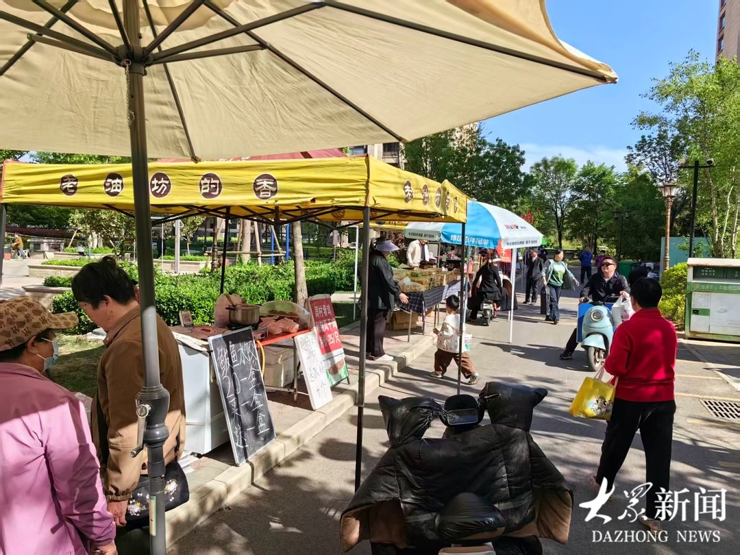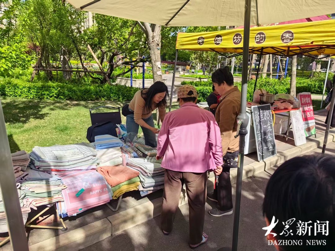 4月12日,淄博高新区四宝山街道植物园社区联合淄博市供销社等单位在恒大正承世家小区开展“黄河大集”活动。现场烟火升腾,吆喝声、欢笑声交织成一曲鲜活的市井乐章,让居民在家门口就逛出了满满的幸福感。