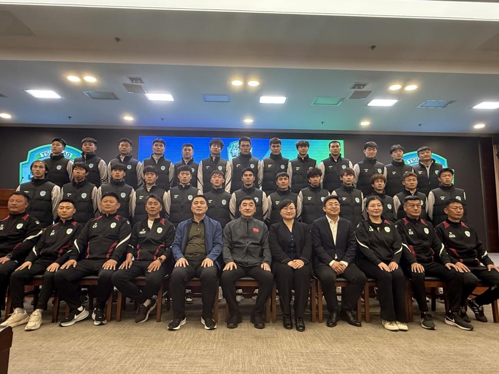 青岛市足球运动管理中心主任、市足协常务副主席兼秘书长田卫国首先汇报了球队备战情况。他指出,青岛队出征2026年山东省齐鲁足球超级联赛的备战工作已全面就绪。自1月以来,经过多轮选拔,组建以田勇、李凯等名将为核心的40余人阵容,特邀郝海涛担任主教练,科学制定训练计划并严抓赛风赛纪;同时优化赛事安排、完成主场平度奥体中心体育场的设施升级,并积极推进招商与保障工作。队伍将于4月18日客场挑战上届冠军泰安队,全队上下誓言赛出水平与风格,为青岛足球争光、为城市添彩。