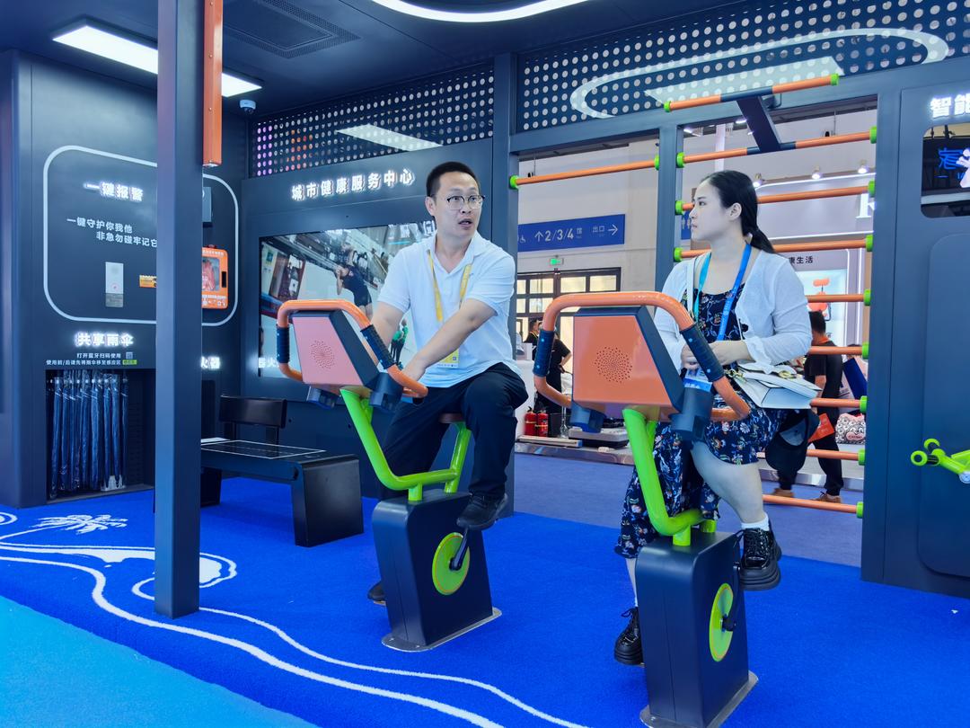 在泰山体育展台中央,全球首发的“城市健康智慧服务中心”一经亮相便成为全场焦点。该产品集健身、便民、安全三大核心功能于一体,融合智能服务与全民健身理念,真正实现“随时健身、即时健康”。无论是繁华都市,还是宜居乡村,该中心可灵活适配多元场景,为城乡公共空间功能升级、全民健身普及提供了创新性的解决方案。泰山体育始终坚守初心,致力于让奥运品质的健康服务惠及全国694个市、2800个县、5亿家庭、14亿人民,在全民健康的道路上不让一个人掉队。