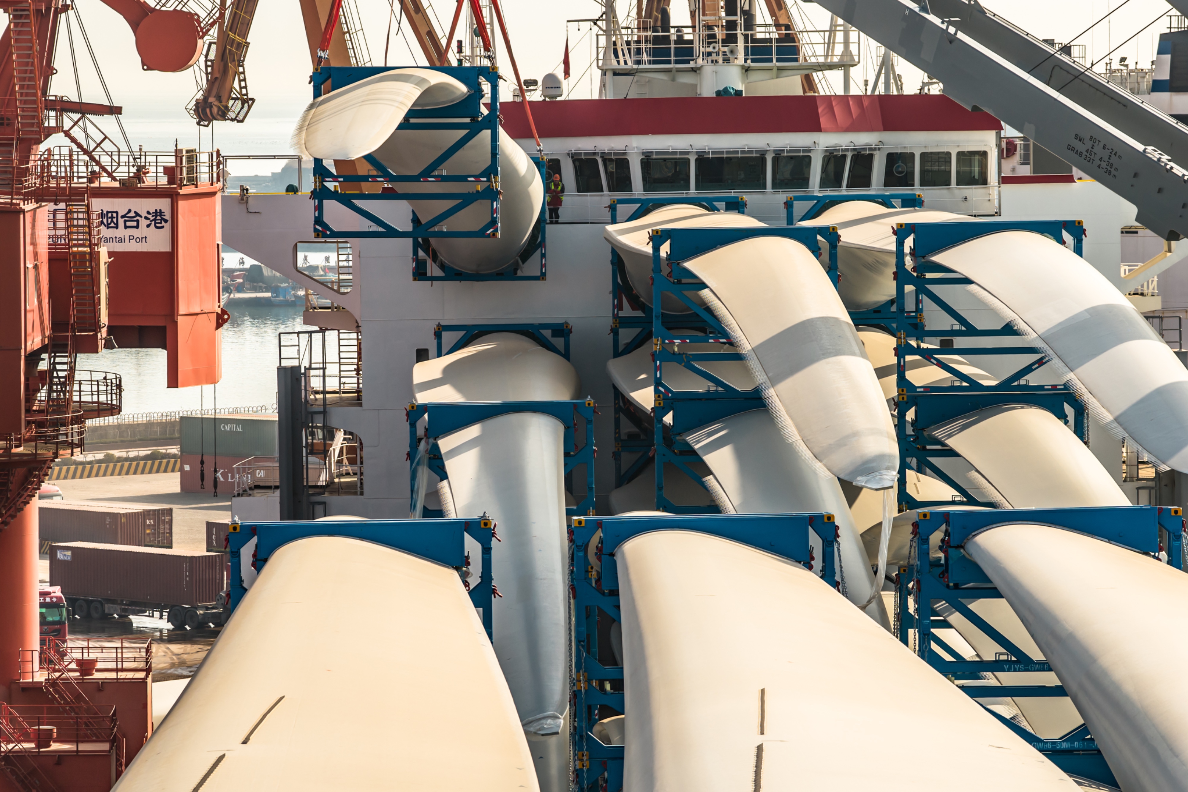 作为“中国北方海上风电母港”、“件杂货物流服务示范基地”,烟台港抢抓风电出海新风口,锚定“面向全球的件杂货物流枢纽港”核心定位,以“特色业务全球影响力大提升”为中点突破口,通过“四集成、一平台”与知名国际船公司、国内物流公司、风电产业协同联手,布局风电装备制造产业全链条,形成装备制造、物流集港、港口堆存、船舶订舱、整机发运、海外分拨、售后运维七大关键环节产业链,并充分依托开通的35条国际件杂货航线为“中国制造”通达全球搭建“海上高速路”。