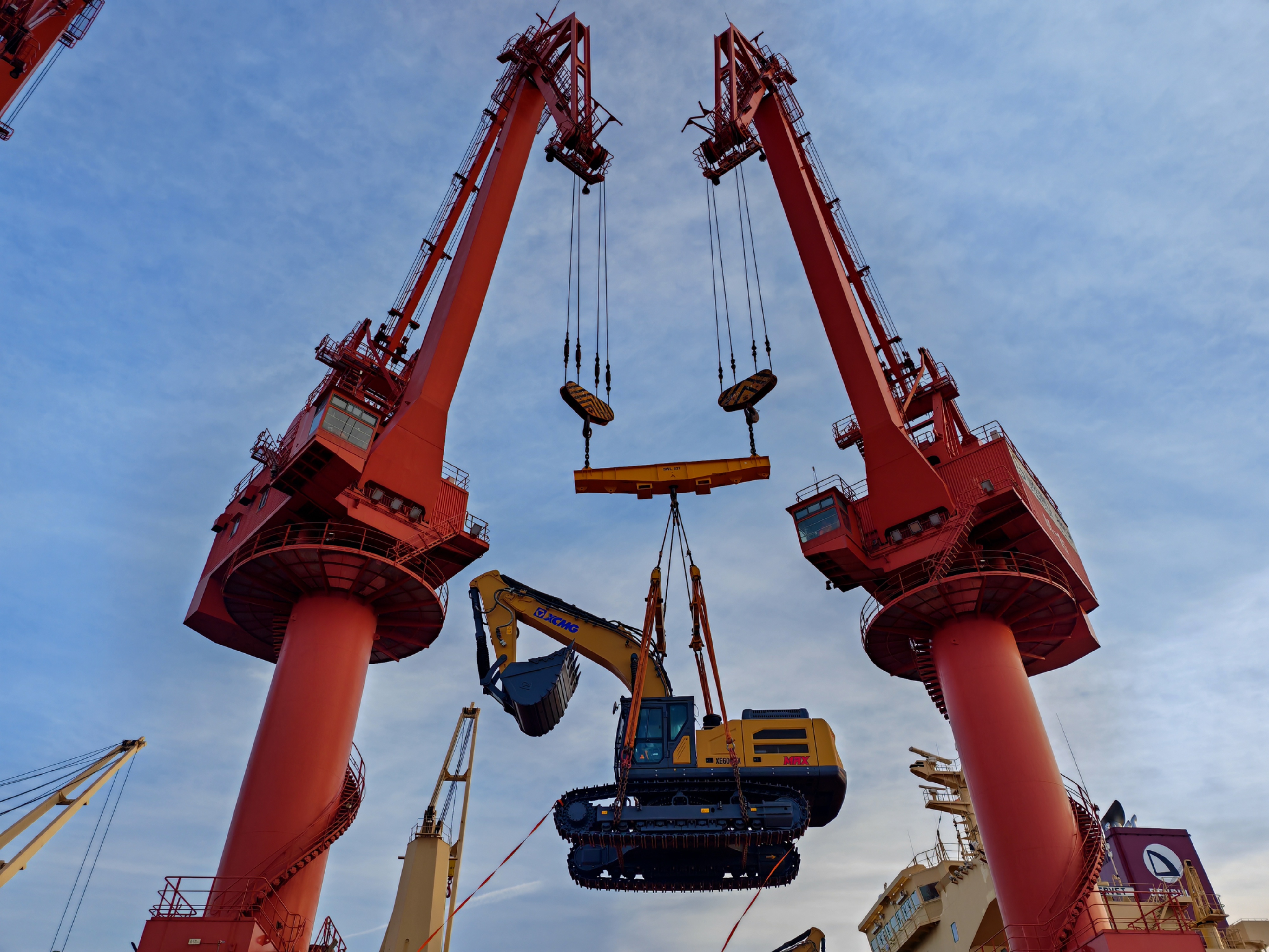 近日,来自华东、华北地区的工程机械、风电设备陆运至烟台港蓬莱港区集港装船,装载完毕后发往欧洲。这是山东港口烟台港首次通过“一港直装、整机发运”模式承揽整套风电设备及工程机械装船出海,在重难件高精度吊装作业工艺上实现新突破,以“万能码头”之姿,为高质量共建“一带一路”和“中国制造”通达全球提供高效、专业、坚实的港口综合物流服务。