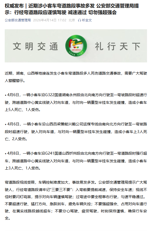 公安部交通管理局微信公众号 2026-04-14 17:35:56