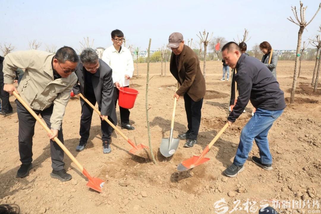 3月27日,在天津市西青区杨柳青大运河国家文化公园文昌阁前,天津市西青区和哈密市两地代表共植左公柳。李旭光摄
