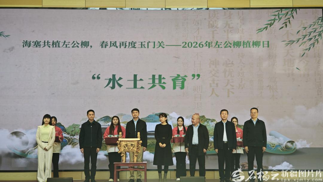 4月9日,哈密市伊州区宗棠路旁的左宗棠凤凰台历史文化公园里,哈密市“海塞共植左公柳 春风再度玉门关”2026左公柳“植柳日”主场活动举行。福建省福州市、天津市西青区与乌鲁木齐市、伊犁哈萨克自治州、喀什地区、和田地区及哈密市的代表,将取自家乡的土壤汇入一尊“山河鼎”。来自天南海北的泥土在此交融,共同培育一株名为“同心柳”的左公柳新苗。