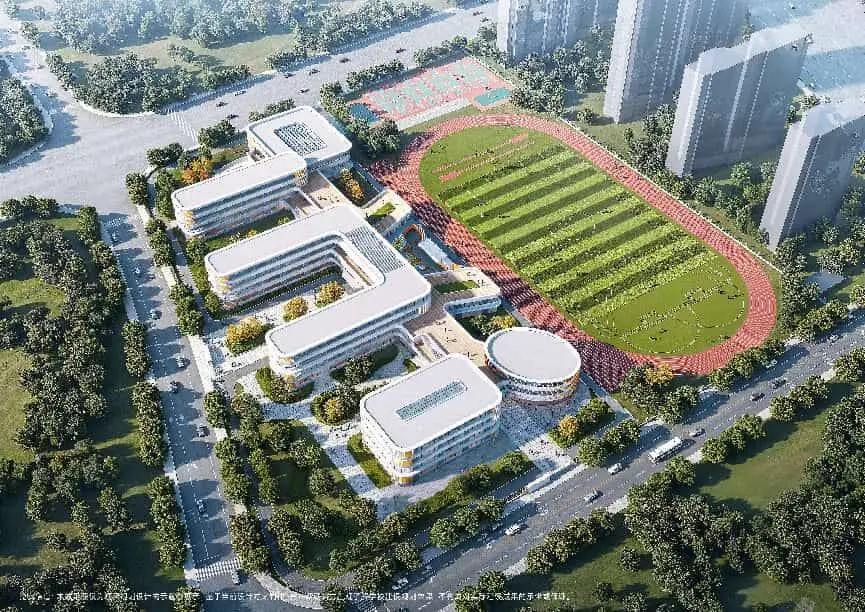 会展北九年一贯制学校规划为36班公办建制,高标准配建了科创实验室、艺术专用教室、室内体育馆、学生礼堂等全维度素质教育场地,搭配高绿化、优采光的生态环境。校园采用了科学分区设计,教学区、运动区、生活区布局合理、动静分离,立体连廊串联起各个功能区间,为孩子们打造了舒适、现代的成长空间。