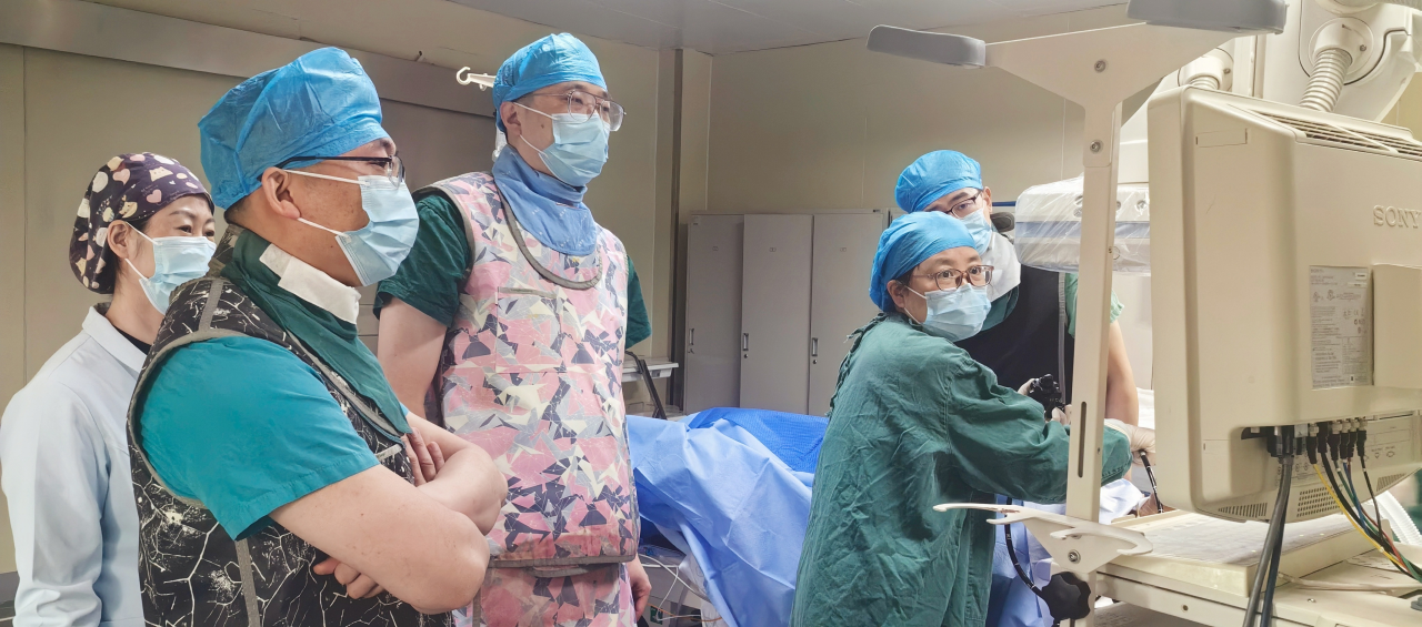 手术现场,宛如一场“多兵种联合作战”:麻醉科副主任荆丽君率先为患者施行精准麻醉,保障患者在无痛且平稳的状态下接受手术,同时维护术中的生命安全。消化内科副主任医师吉华青操控胃镜进入食管,仿若“侦察兵”一般,从食管一侧“探查敌情”,精准定位瘘口的位置、大小与形态。介入科主任贺光辉犹如“总指挥”,在X线透视下,将一枚封堵器借助输送系统精准送至瘘口。内镜诊疗中心主任李作涛操作气管镜进入气管,再次确认瘘口细节与封堵器位置。在胃镜和气管镜的协同监视下,封堵器缓缓释放,恰似一把撑开的伞,稳稳“铆”定在瘘口两端,顷刻间将异常通道完美封堵。整个手术仅用时半个小时,体表未留下任何切口。