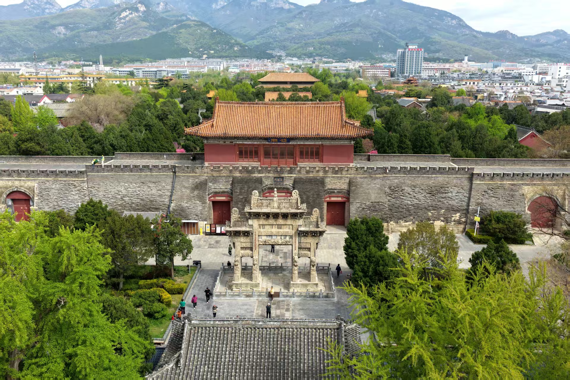 岱庙是登泰山的始点,也是泰山文化的根。四月的岱庙,古柏参天,牡丹初绽。沿着中轴线走进去,配天门、仁安门、天贶殿,每一座殿宇都庄严肃穆。天贶殿内的宋代巨幅壁画《泰山神启跸回銮图》,历经千年风雨,色彩依然鲜亮。站在壁画前,仿佛能听到銮铃声响、仪仗喧天。