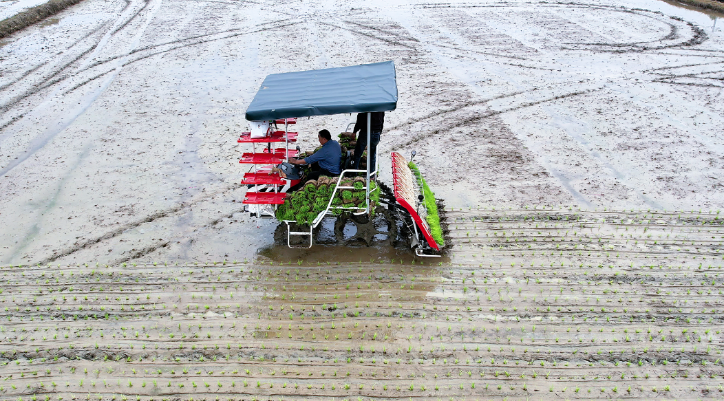 “我们合作社流转了2500亩,早稻1600亩,今年雨季长,要抢时间插秧。”贺可文一边指挥作业,一边道出当前春耕的紧迫节奏。