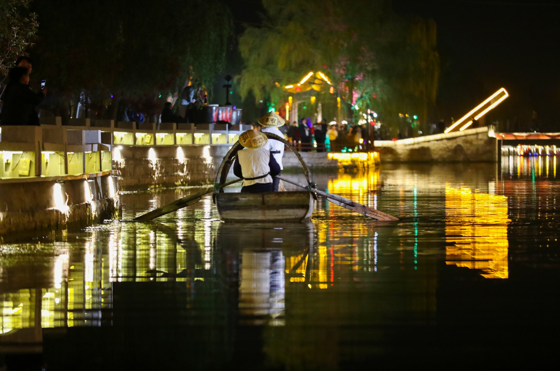 傍晚时分,记者随采风团来到南阳古镇,鱼灯逐渐亮起,步入其中宛若穿越了时光——青石板路、木雕花窗、斑驳的砖墙,一切都保留着明清时期的模样。这个曾经是康熙、乾隆皇帝南巡下榻的运河古镇,如今将皇帝出巡的故事编排成为可乘船观看的沉浸式演艺,游客可乘船沿河行进式欣赏河岸边的民俗演艺。