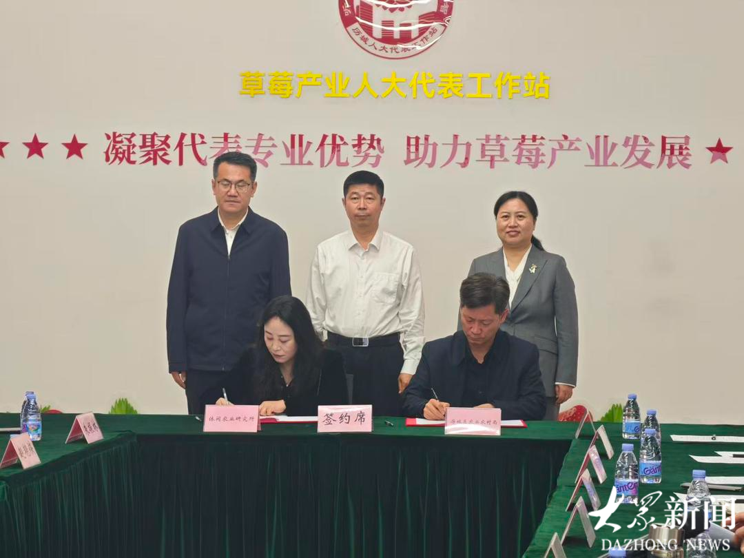 观摩会现场,省农科院休闲农业研究所与历城区农业农村局签署了战略合作协议,双方将围绕产业规划与项目申报、草莓全产业链技术研发与成果转化、技术服务与人才培养、国际合作与交流拓展等方面开展深入合作。省农科院休闲农业研究所设施草莓育种博士工作站落户山东普朗特农业技术有限公司,双方将在前期共建创新中心、落地试验示范基地、打造草莓科技小院等合作基础上,进一步聚焦草莓种质创新开展合作。