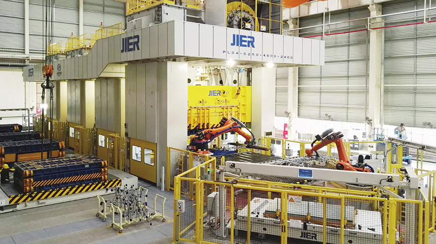 济南二机床机器人连续全自动冲压生产线。