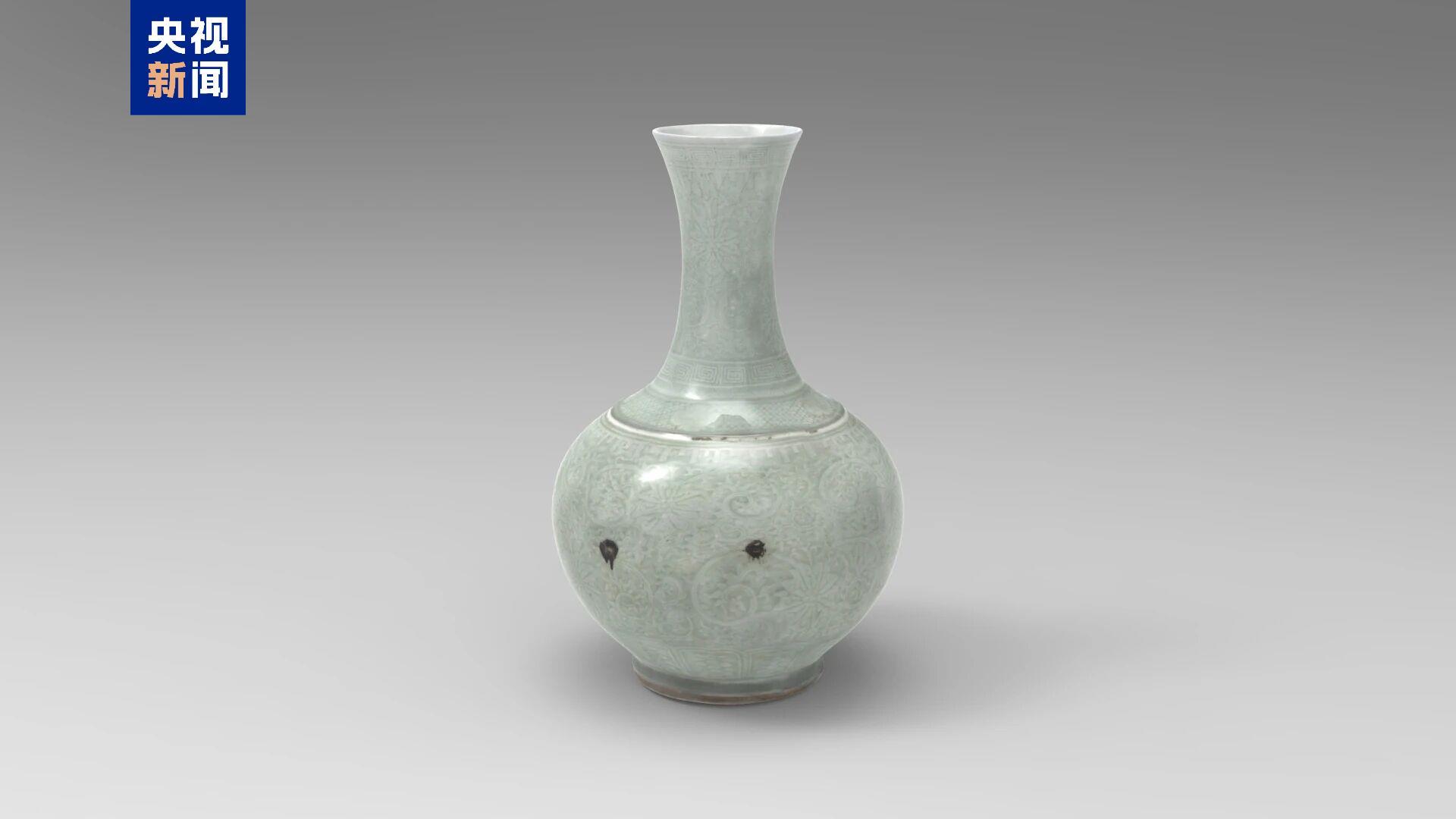 △乾隆豆青釉暗花缠枝莲纹赏瓶,烟台市博物馆藏。
