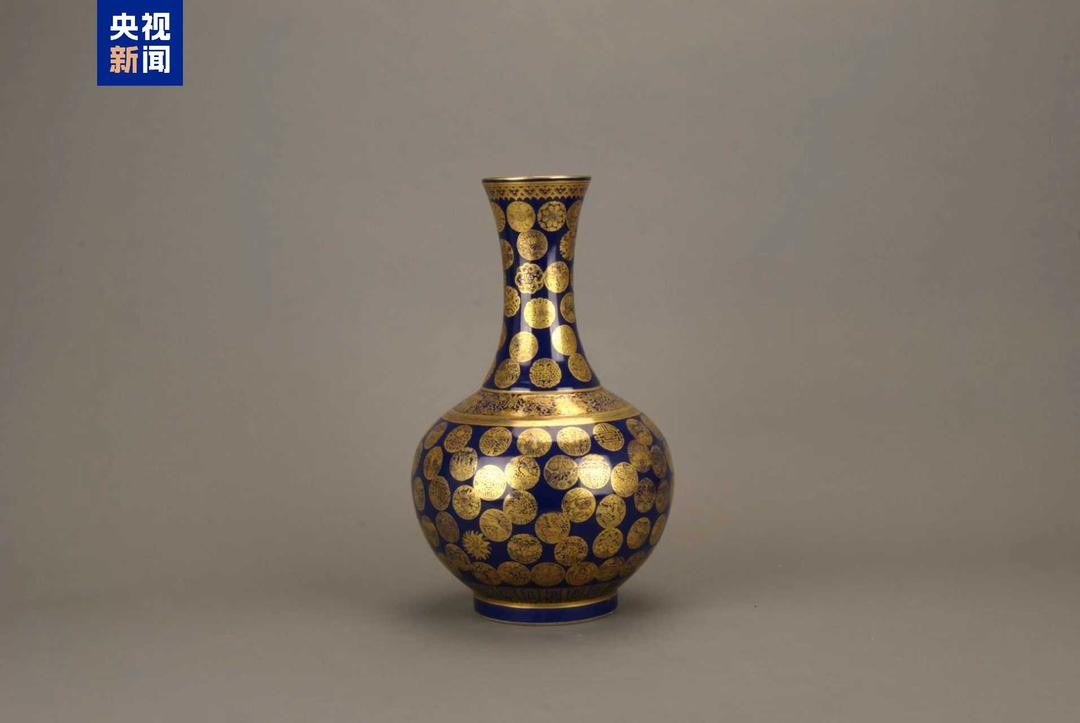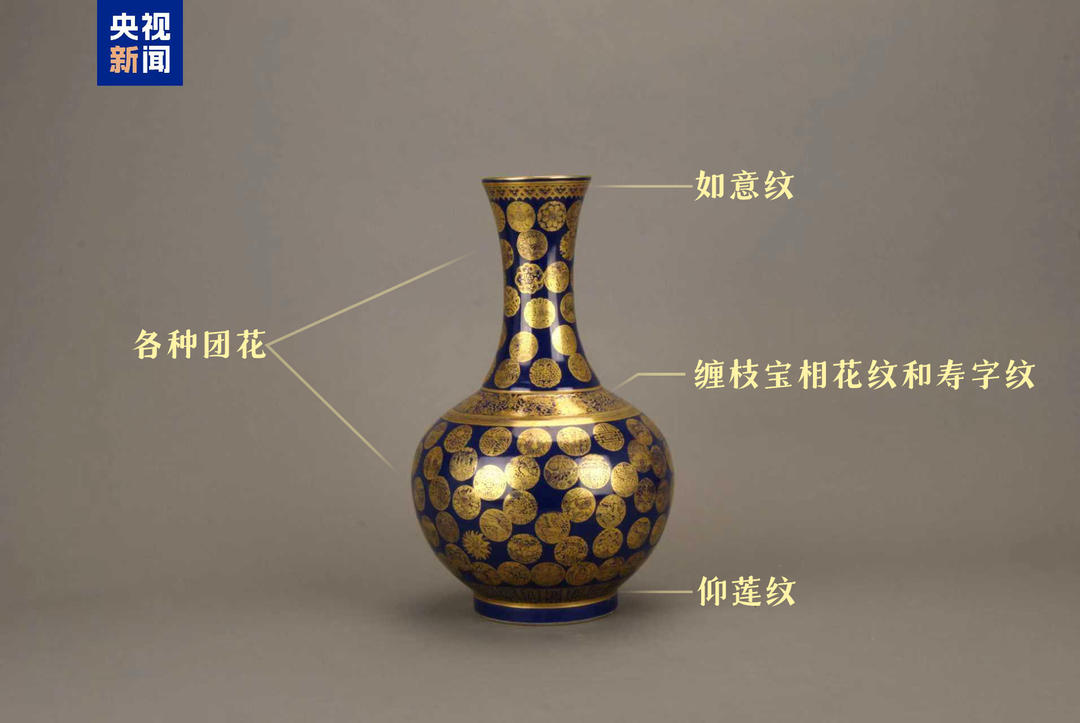 今天一起认识祭蓝釉描金团花赏瓶