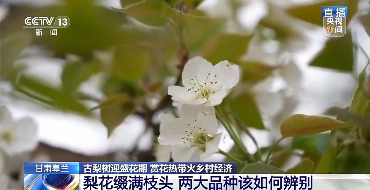 总台记者 崔林欣:甘肃省兰州市皋兰县的什川古梨园总面积达1.2万亩,有古梨树9400多株,其中树龄超300年的就有2000多株。这两天正是最佳观赏时段,满树梨花就像点点白雪,装点在枝头。