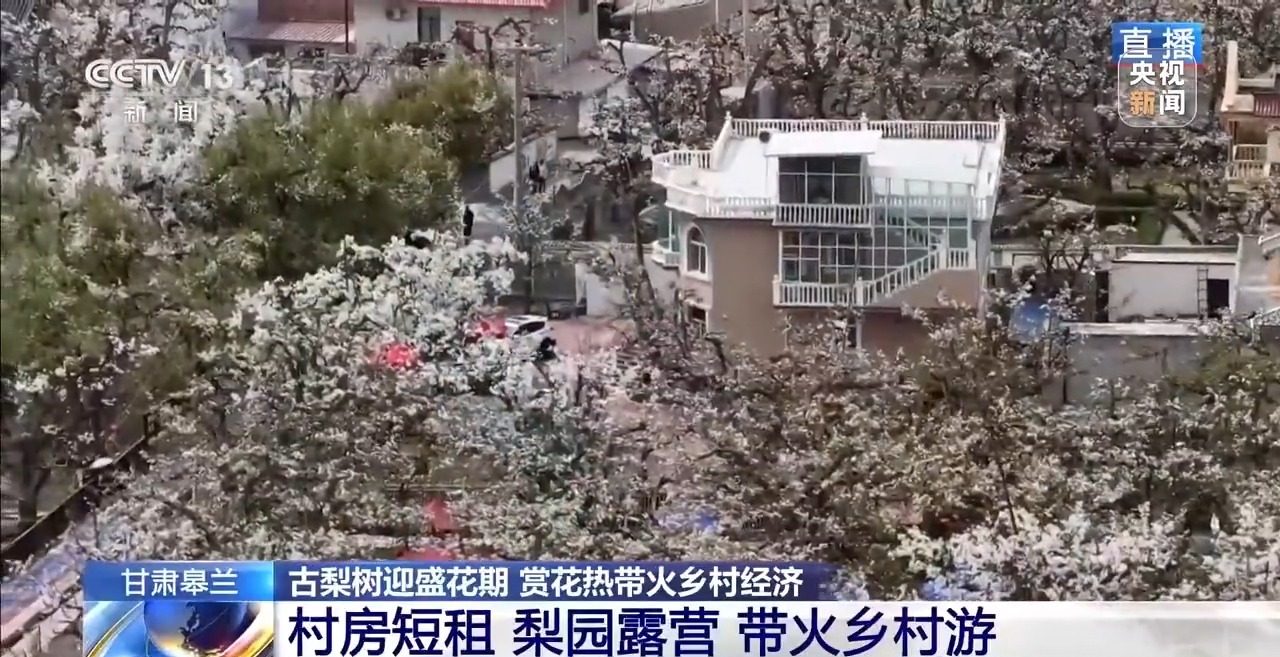 总台记者 崔林欣:什川镇上车村就在梨园深处,赏花热直接带火了乡村经济,不少村民推出村房短租,把自家空闲的房间租给游客,让外地游客可以住进农家小院,沉浸式体验梨园村落的慢生活。