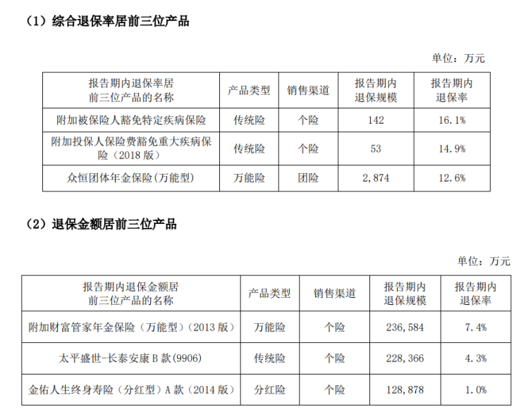 退保方面,部分主力产品退保规模相对较高。据偿付能力报告数据显示,2025年,太保寿险三款主力个险产品退保金额合计达59.39亿元,逼近60亿元关口,其中附加财富管家年金保险(万能型)(2013版)退保23.66亿元、太平盛世—长泰安康B款(9906)退保22.84亿元、金佑人生终身寿险(分红型)A款(2014版)退保12.89亿元。高额退保既反映出部分存续产品市场竞争力不足、无法满足客户需求,也暴露了其前期销售不规范、客户需求匹配度低等问题。