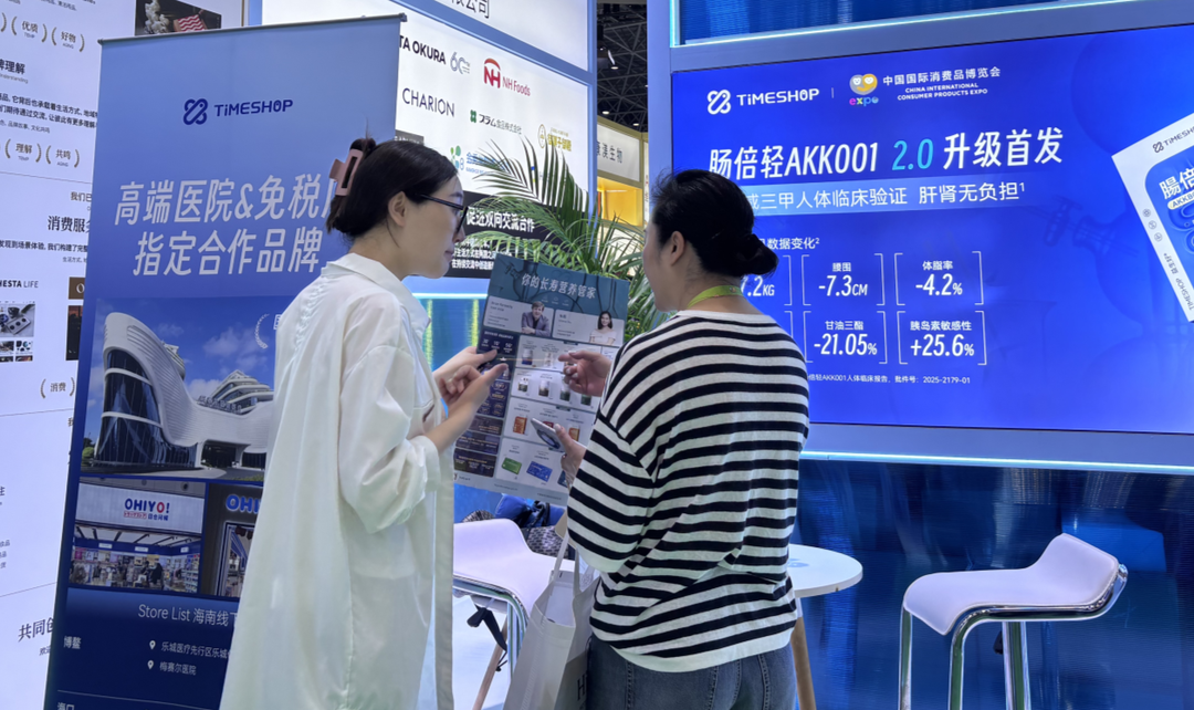 作为海南自贸港全岛封关运作后的国家级消费首展,本届消博会汇聚全球60余个国家和地区、超3400个优质品牌,集中呈现消费领域新产品、新技术与新趋势。在健康消费展区,来自中国香港的抗衰品牌TimeShop携其长寿营养系列新品亮相,重点展示近年来在相关领域的研发进展及产品化探索。
