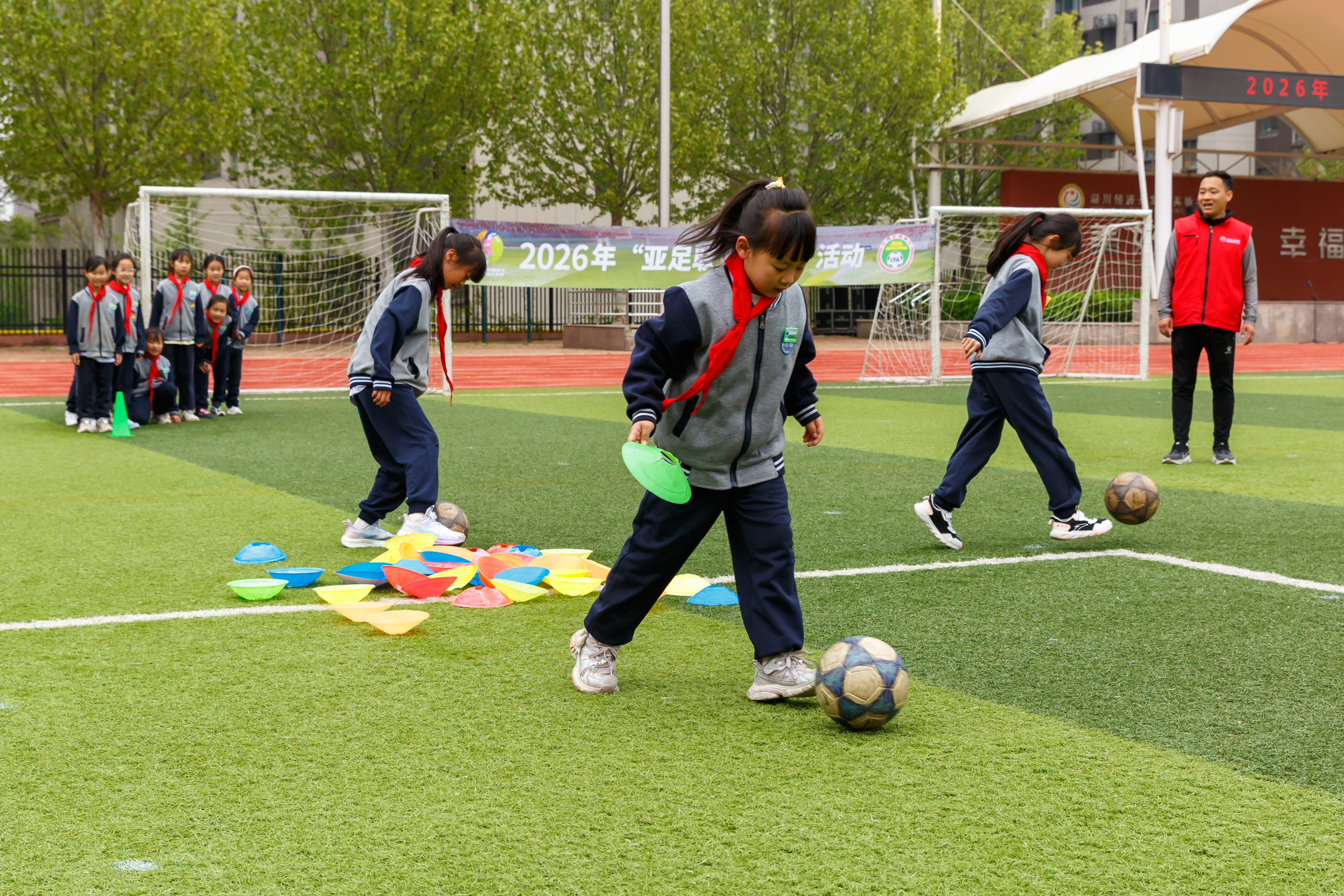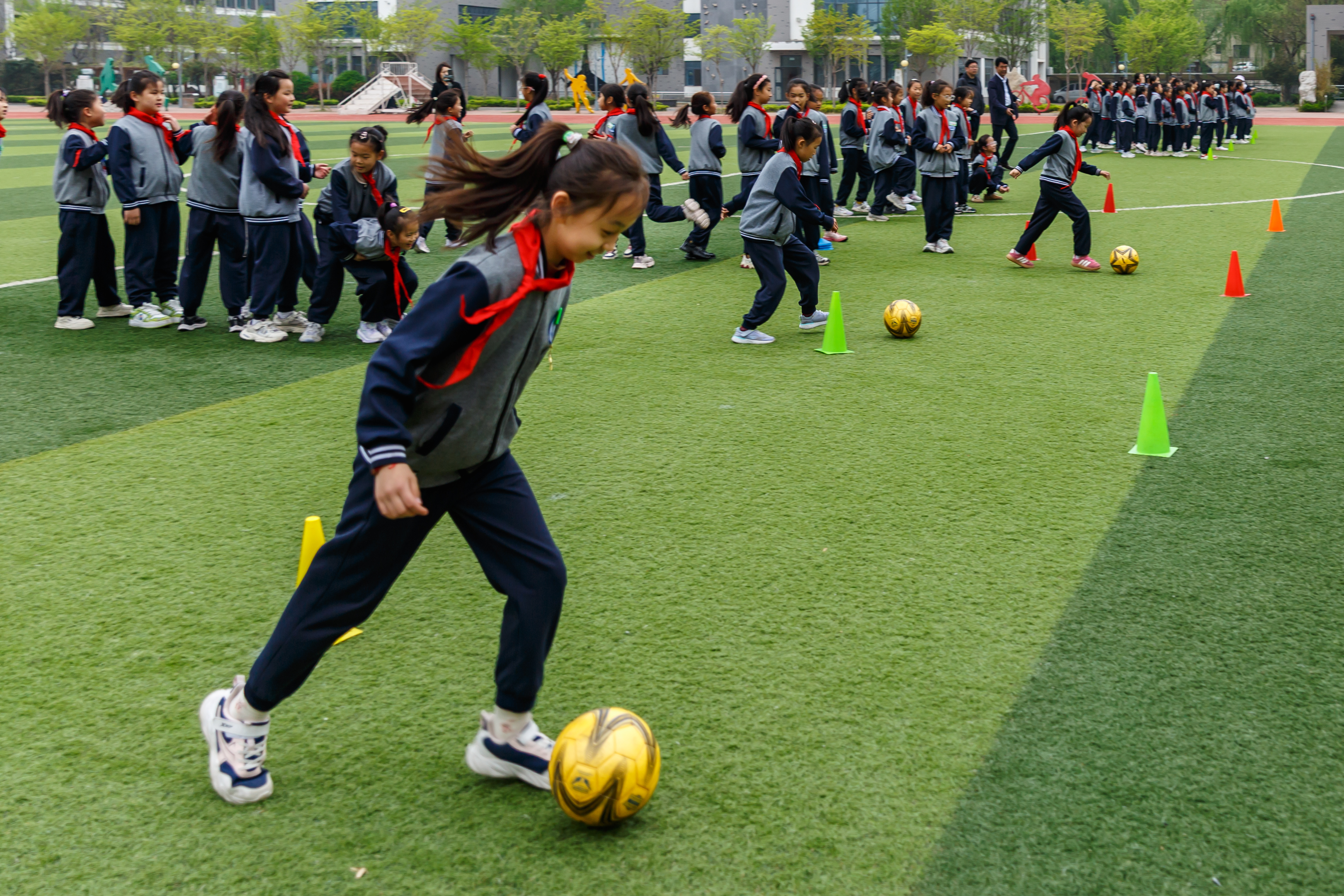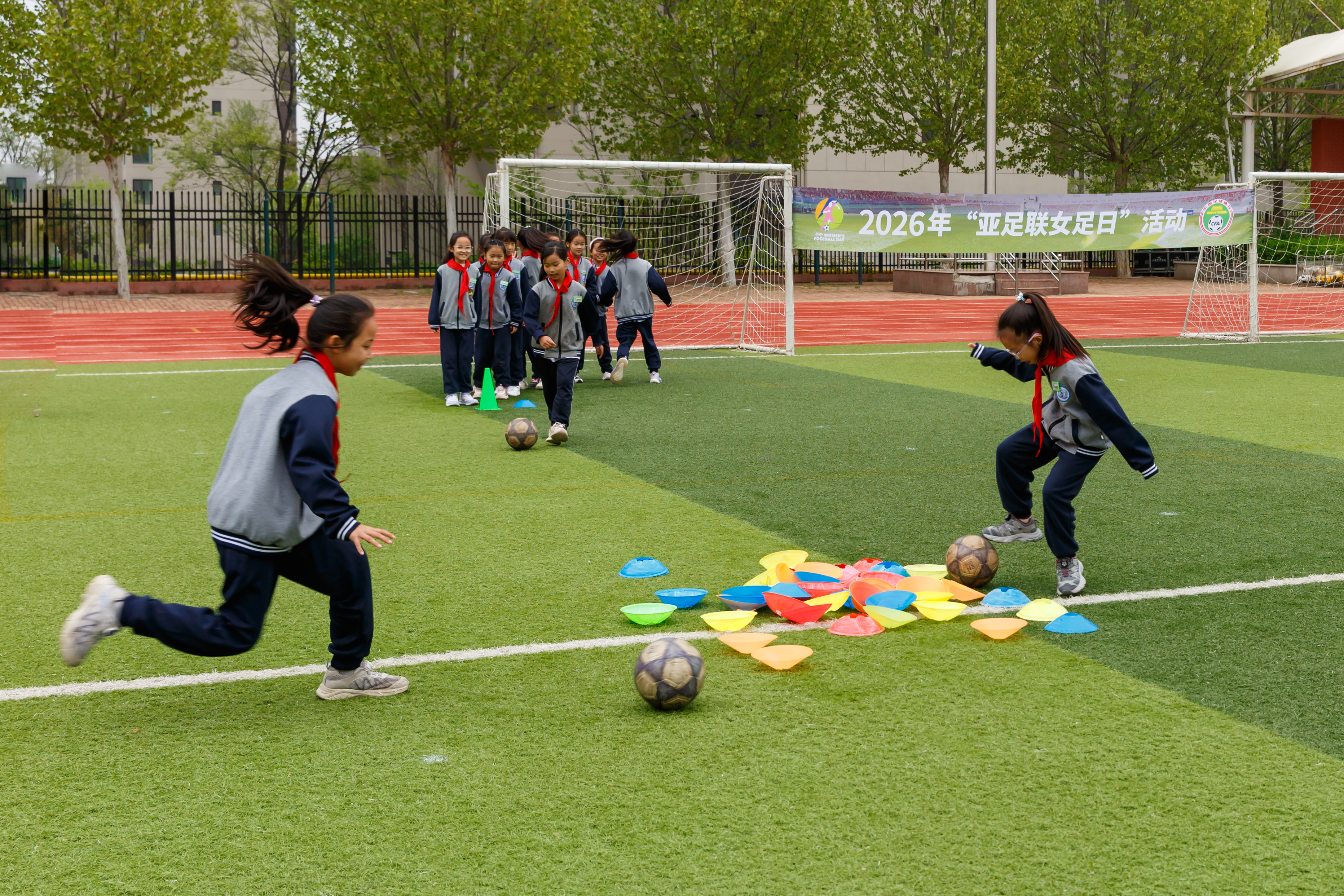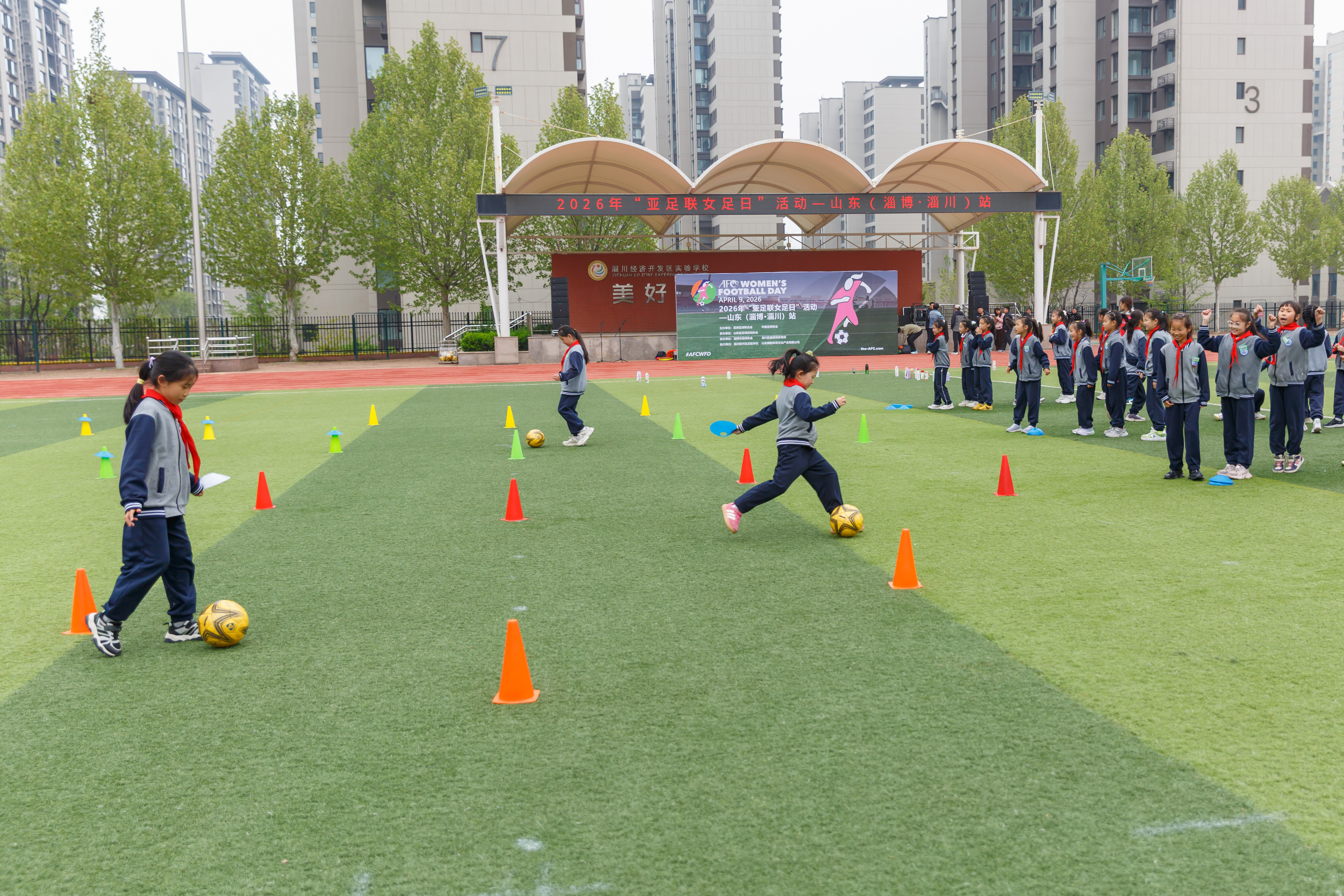 作品介绍:本组作品拍摄于2026年4月9日淄博市淄川经济开发区实验学校。当日,为响应亚足联“亚足联女足日”号召,推广女子足球运动普及与发展,由亚洲足球联合会指导,中国足球协会主办,山东省足球运动协会联合济南能源集团有限公司承办的2026年“亚足联女足日”活动,在淄博市淄川经济开发区实验学校举行。近200名女学生在专业指导员带领下参与趣味足球游戏,在绿茵场上奔跑嬉戏、挥洒汗水,尽情感受足球运动的魅力与快乐。