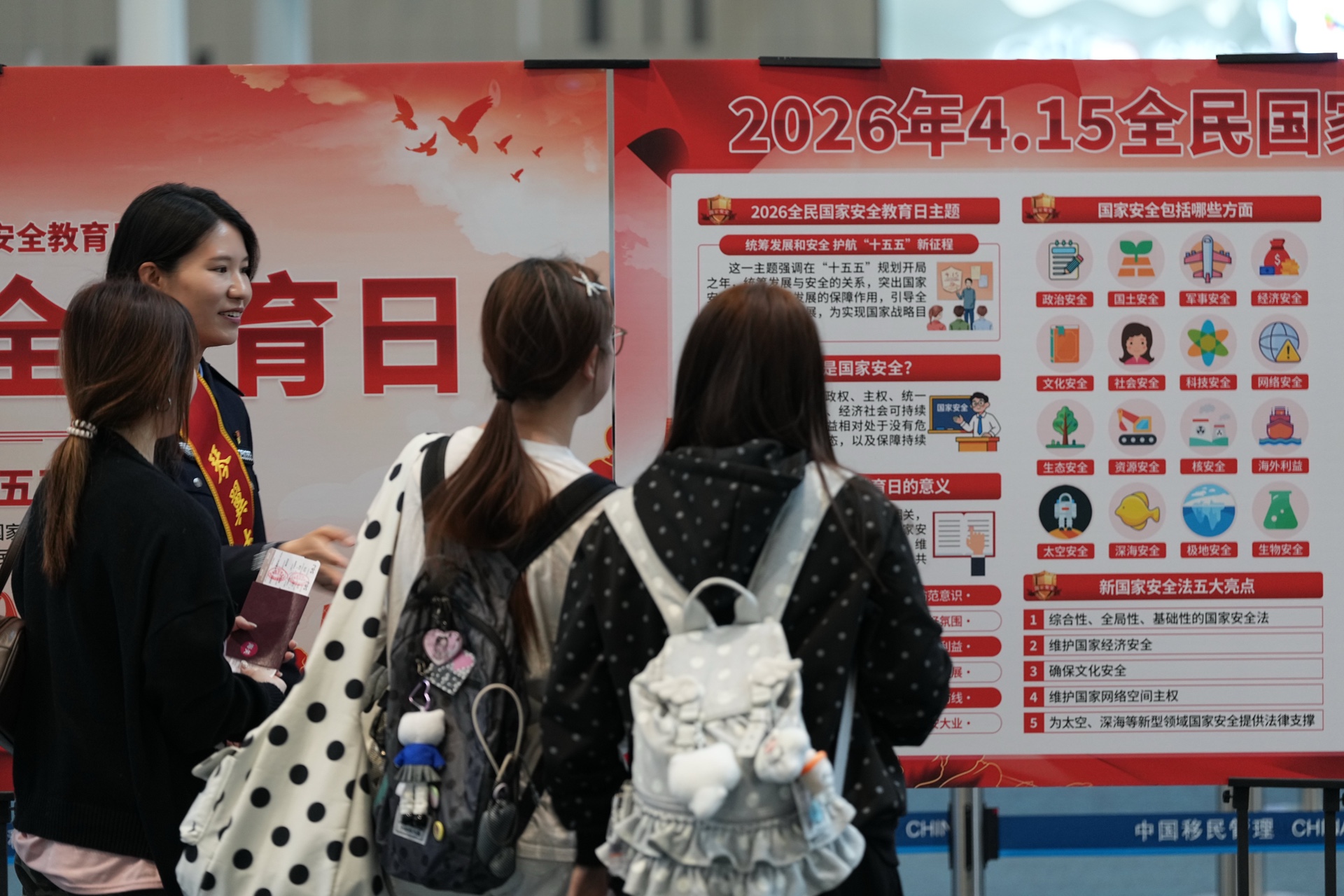 在第十一个全民国家安全教育日来临之际,4月14日至15日,山东边检总站青岛机场边检站立足空港国门前沿阵地,精准开展普法宣传活动,以实际行动守护口岸安全、传递法治温度。