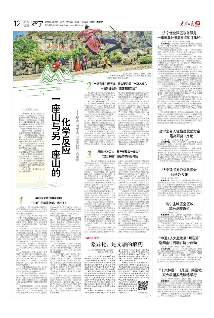 吴军指出,济宁坐拥曲阜三孔、邹城孟庙、水泊梁山等顶级文化资源,但长期以来多数景区困于“参观文物”的传统模式,跳不出“门票经济”的单一框架,甚至以“文化资源利用受限”“三线城市财政紧张”等为由安于现状。“双山联姻”的核心价值,不在于一次流量的爆发,而在于为济宁文旅引入一套市场化运营的参照体系,证明了只要找准文化内核与市场需求的结合点,沉睡的文化资源就能转化为实实在在的发展动能。