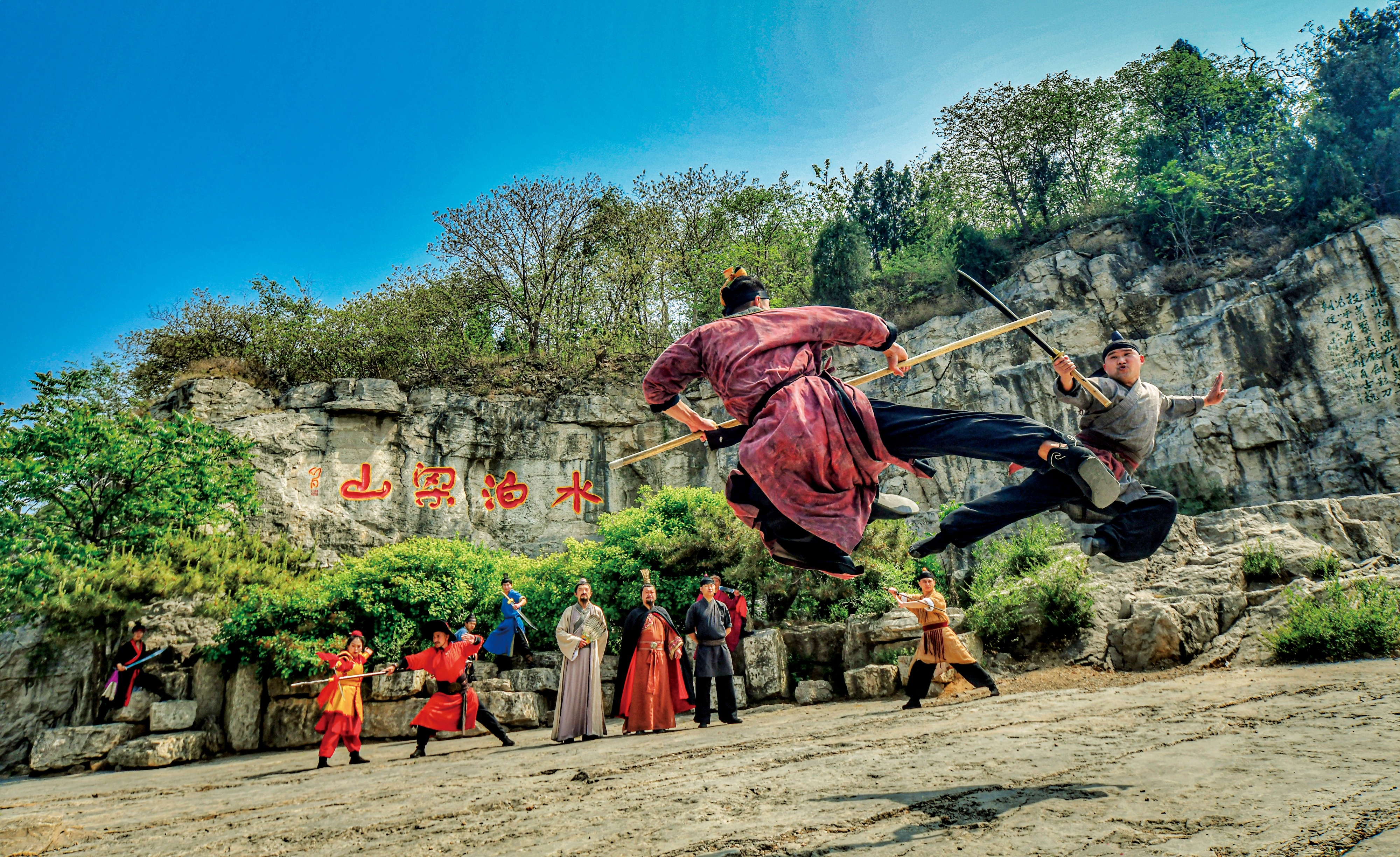 “依托大宋武侠城的主体定位,我们大量使用了《水浒传》元素,但景区在文化叙事上难免有‘架空感’。”肖旭解释道,“而梁山作为水浒文化的真实发生地,能够为我们的水浒叙事提供坚实的文化支撑。”更重要的是,梁山得天独厚的山水资源,高度契合了“江湖原乡”的气质。在人造景区遍地开花的今天,这种自然与文化的双重禀赋,成为了差异化竞争的核心优势。