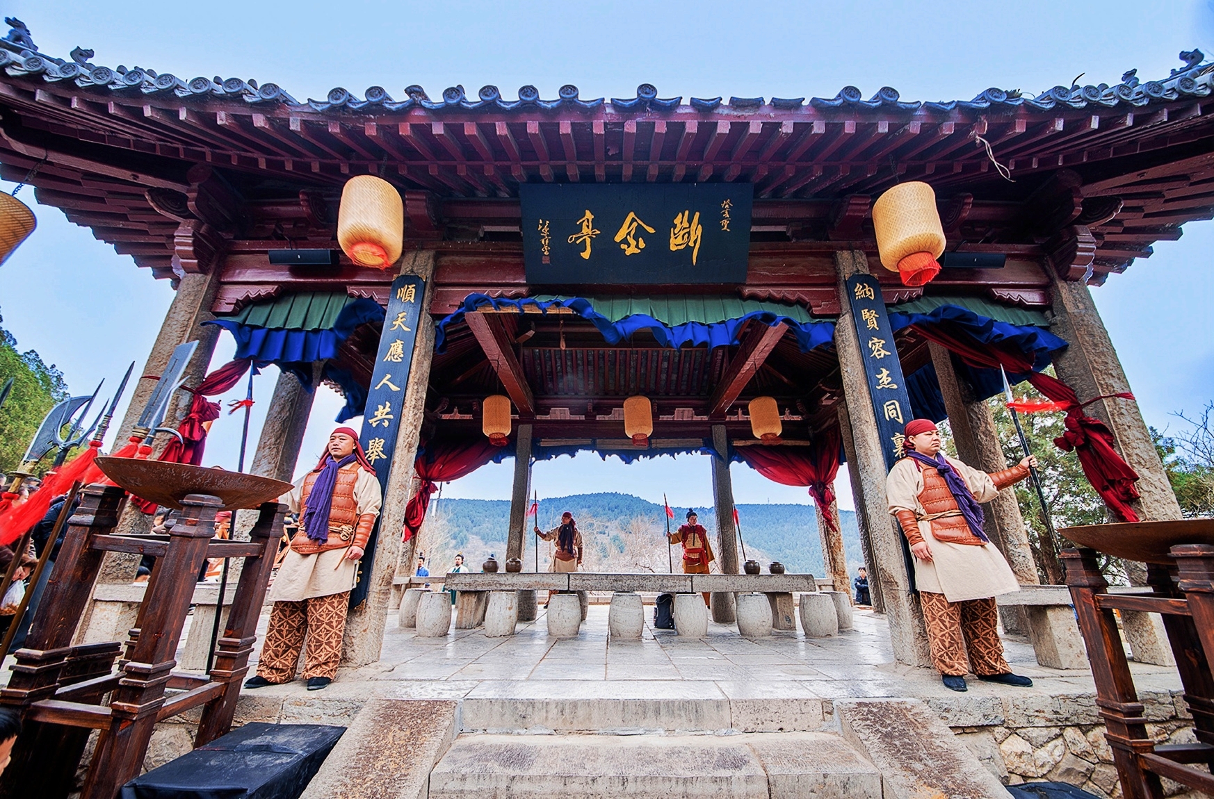 针对梁山景区原有产品体验单一、参与感弱的痛点,合作首要任务是对其进行“沉浸式、互动化、剧情化”的全面升级。一方面是空间场景再造。实施梁山景区品质提升、水浒影视城仿宋市井再造、聚义湖水战项目开发三大工程,将物理空间从山水观光的单一场景,转化为“可进入、可互动、可体验”的立体江湖世界。另一方面是核心体验重构。将万岁山成熟的“强剧情、强互动、强演艺”运营模式系统导入,通过经典剧目巡演、全域NPC互动叙事等爆款活动植入,成功将游客体验从“观看”转变为“参与”,从“游览梁山”升维为“上山入伙,闯荡江湖”。