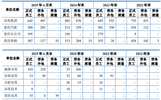 双英集团的劳务用工问题,也引发了外界的广泛质疑。2025年末,双英集团员工总数为3711人,其中劳务外包人数高达3044人,外包规模已逼近正式员工数量。这意味着,工厂里近一半的工作是由外包人员完成的。