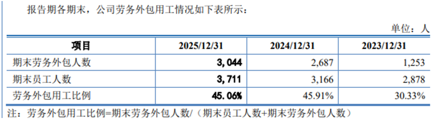 劳务外包用工占比高达45%,两子公司劳务派遣用工超过10%红线