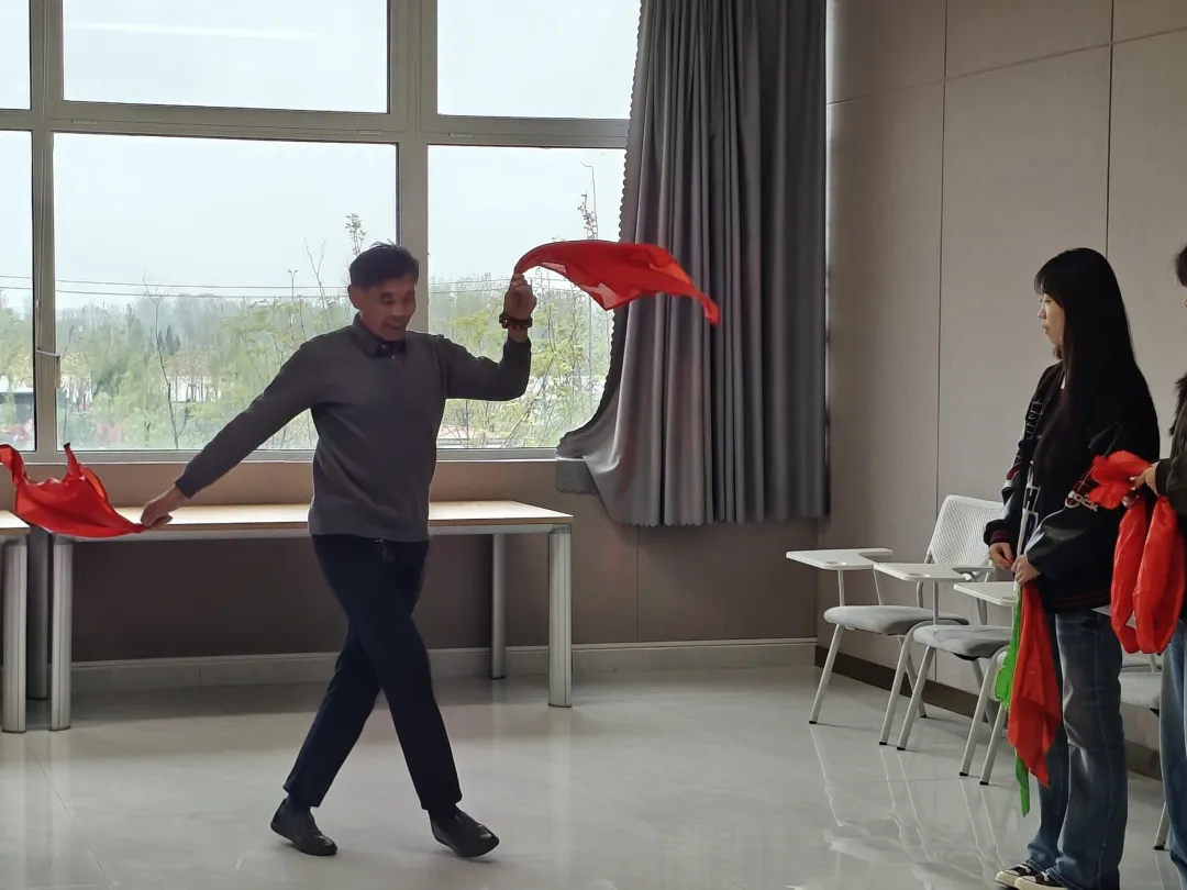 近日,应滨州科技职业学院邀请,阳信县洋湖乡秧歌协会省级非遗传承人王贵普走进校园,开展鼓子秧歌教学活动,让青年学子近距离感受传统民间舞蹈的独特魅力,推动优秀传统文化在青年群体中落地生根。