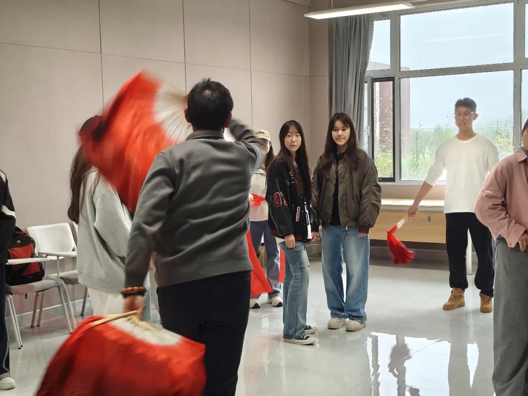 本次教学活动有100余名学生参加,现场气氛热烈,秧歌传承人王贵普以生动示范、细致讲解的形式,系统传授秧歌的基本步伐、肢体韵律与表演技巧。王贵普老师从动作要领的拆解教学,到情感表达的现场指导,将阳信鼓子秧歌的粗犷与细腻兼具的艺术特色展现得淋漓尽致,引得在场学生频频驻足学习、积极互动。
