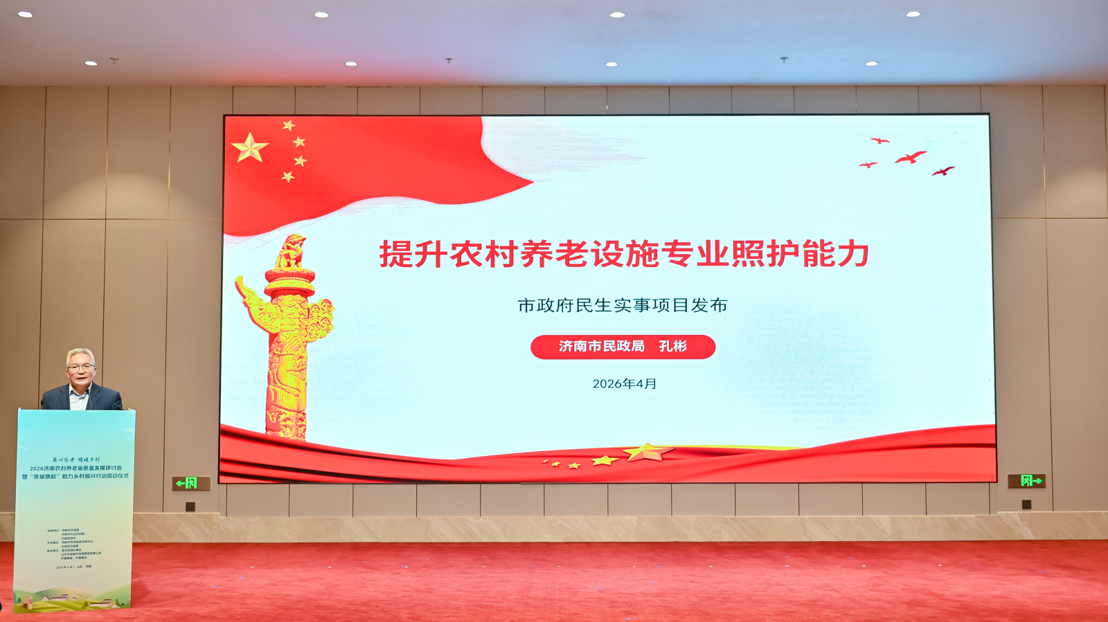 活动现场,济南市民政局养老服务处处长、一级调研员孔彬正式发布2026年济南市重点民生实事“提升农村养老设施专业照护能力”项目,通过床位升级、设施改造、服务提标,让农村老年人在家门口就能享受到更安全、专业、普惠的养老服务。