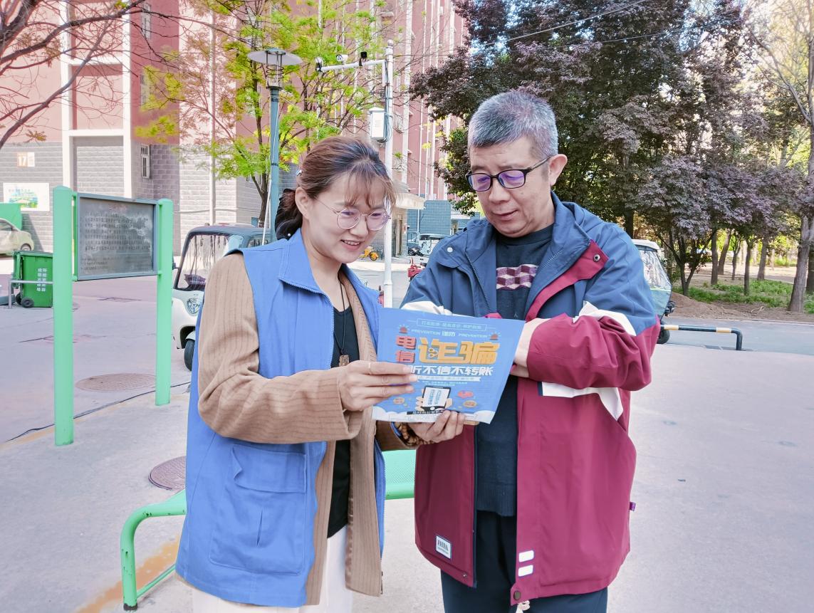 为有效遏制电信网络诈骗案件高发态势,切实守护居民群众的财产安全,近日,乔庄社区网格员联合社区退役军人公益岗深入辖区各个角落,全方位开展反电信诈骗宣传活动,筑牢社区反诈安全防线。