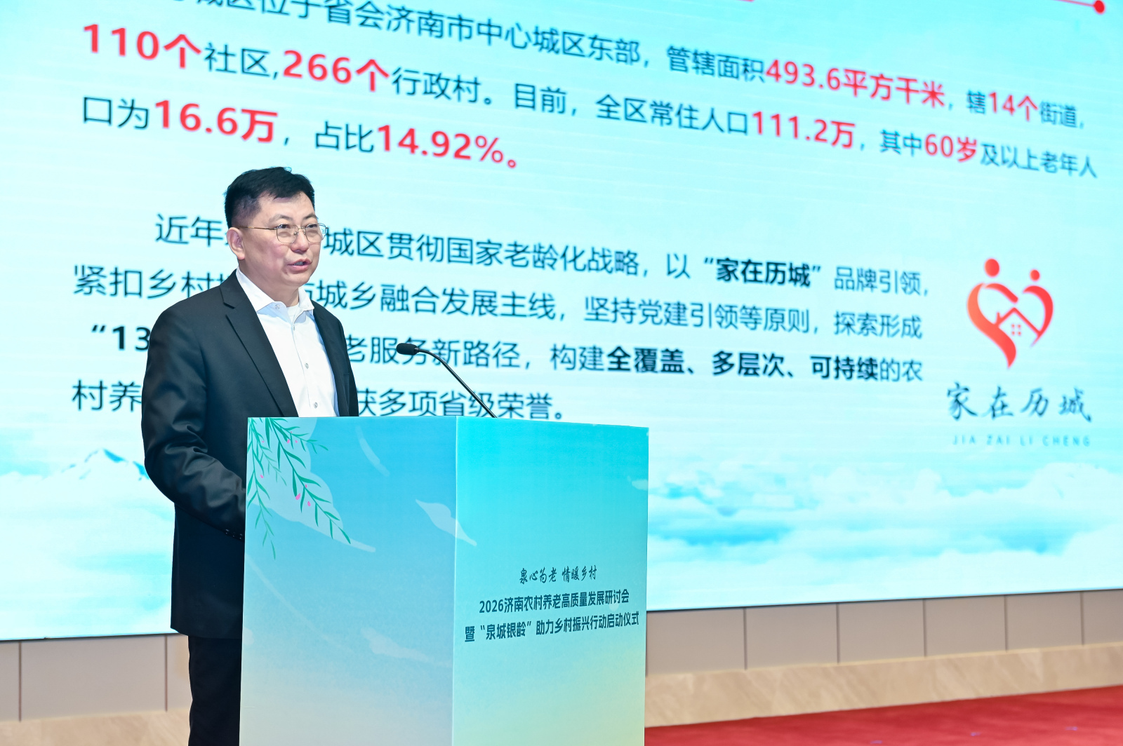 凝聚政企学研智慧,共探农村养老新路径。4月15日,“泉心为老 情暖乡村”2026济南农村养老高质量发展研讨会暨“泉城银龄”助力乡村振兴行动启动仪式在历城区港沟街道芦南乡创基地举办。济南市历城区民政局党组书记、局长李春迎分享历城经验,亮出农村养老高质量发展“成绩单”。