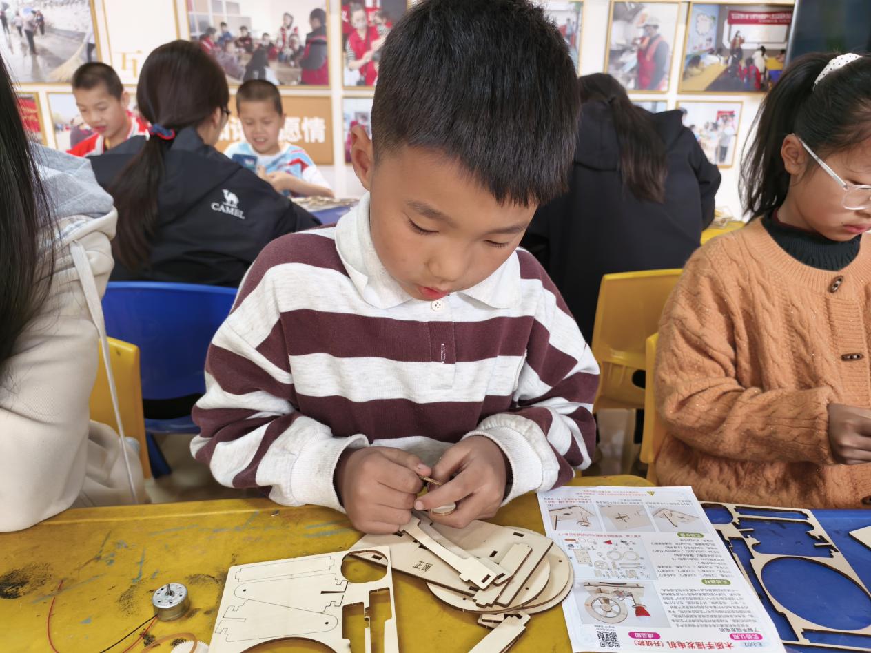 动手实践环节,大家在老师指导下,小心翼翼地拼接木质零件、连接电路、组装传动结构。从零件分类到线路对接,从固定支架到调试转动,每一步都专注投入、相互协作。随着手柄转动,小灯泡成功亮起,现场响起阵阵欢呼声,孩子们在亲手实践中见证科学奇迹,收获满满的成就感。
