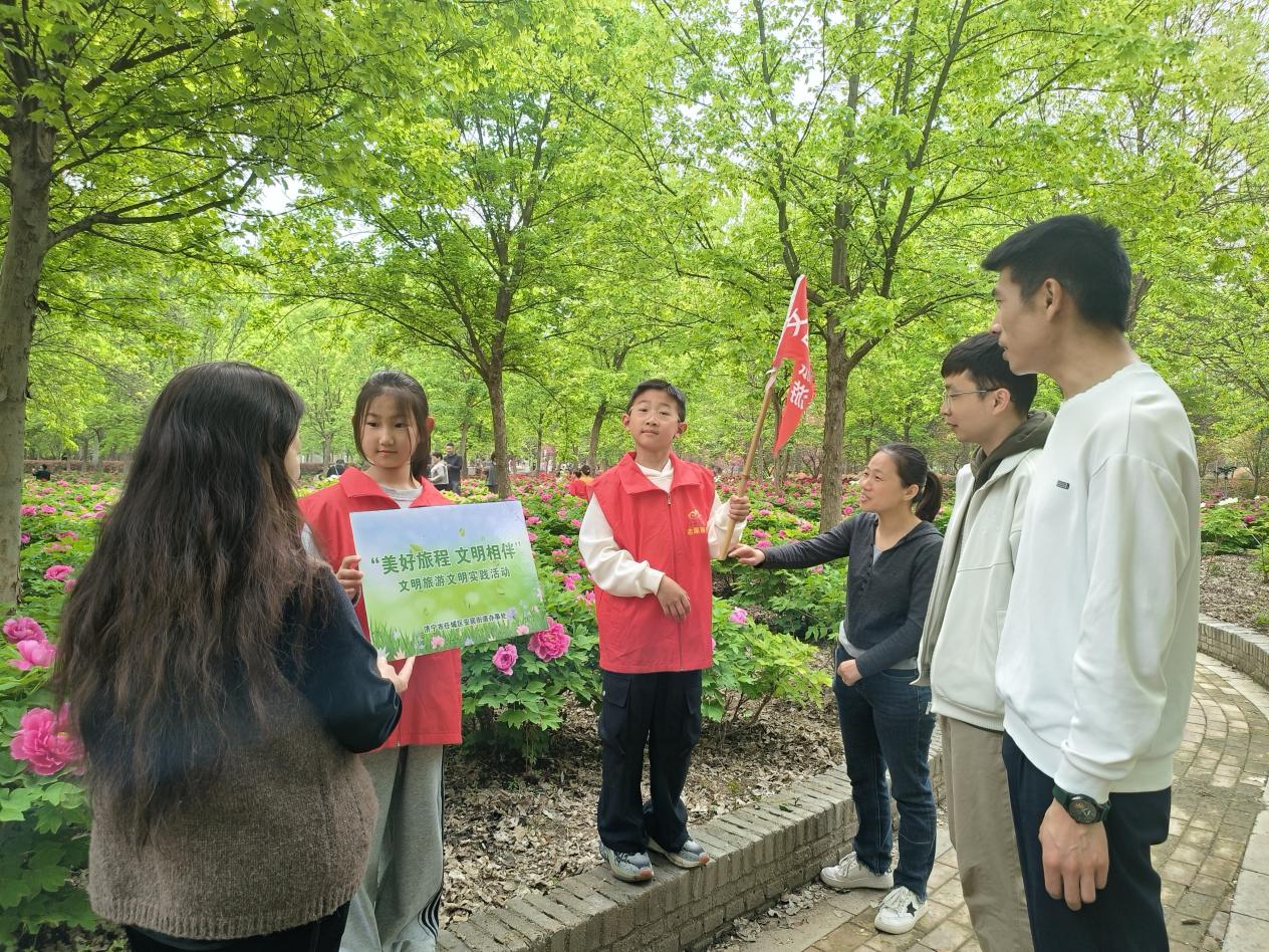 4月11日,春意盎然,济宁市任城区安居街道四季牡丹园内万株牡丹竞相绽放,花香四溢。值此盛景,安居街道以花为媒、以文明为魂,精心组织开展“美好旅程 文明相伴”文明旅游实践活动,倡导文明出行、绿色旅游新风尚。