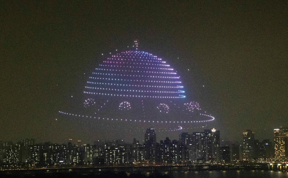 这是4月10日在韩国首尔拍摄的夜景灯光秀。 整个韩国零售业也呈现出类似趋势。乐天玛特和乐天超市的合并数据显示,大米和速食餐的销售额同比大幅增长,游戏相关产品的销售额翻了一番多;露营装备、旅行用品和汽车用品的需求急剧下降,反映出在燃油成本上涨的背景下,长途旅行有所减少。