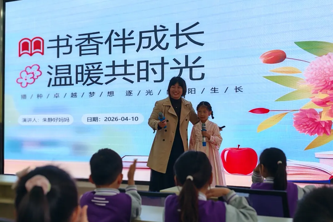 亲子间默契配合、深情共读,温馨的画面、动人的讲述,让现场处处充满爱与温暖,生动展现了家校共育、书香传家的美好图景。