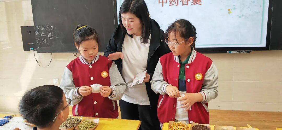 为传承中华优秀传统文化,深化家校共育内涵,让孩子们近距离感受传统中医药文化的魅力,济南高新区黄金谷学校五(3)班邀请家长代表刘雪梅走进课堂,带领同学们亲手制作中药香囊,在指尖实践中传承非遗技艺,感受传统民俗的温情与韵味。