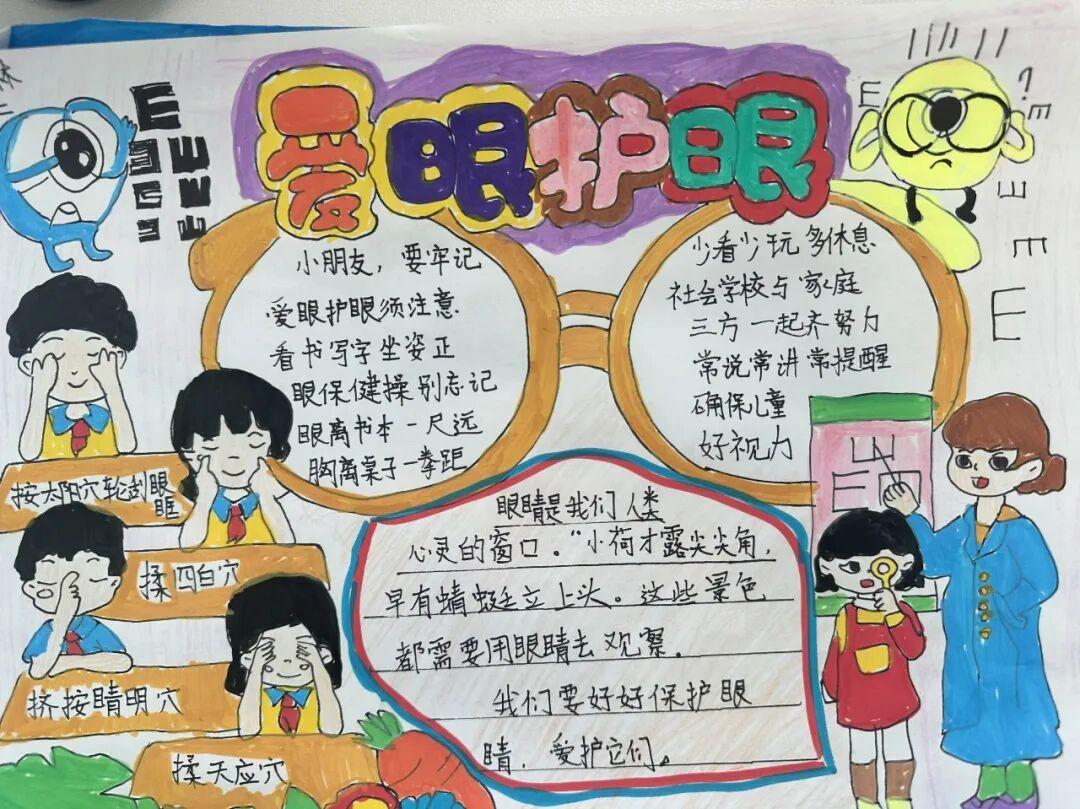 为让近视防控理念深入人心,学校还组织学生开展防控近视主题绘画活动。孩子们拿起画笔,发挥奇思妙想,用五彩颜料、灵动线条,画出对护眼知识的理解,描绘明亮眼睛、健康用眼的美好画面,部分优秀作品在校园宣传栏展示,供师生观赏学习,一幅幅充满童趣的作品,传递着孩子们守护视力、拥抱光明的心愿。