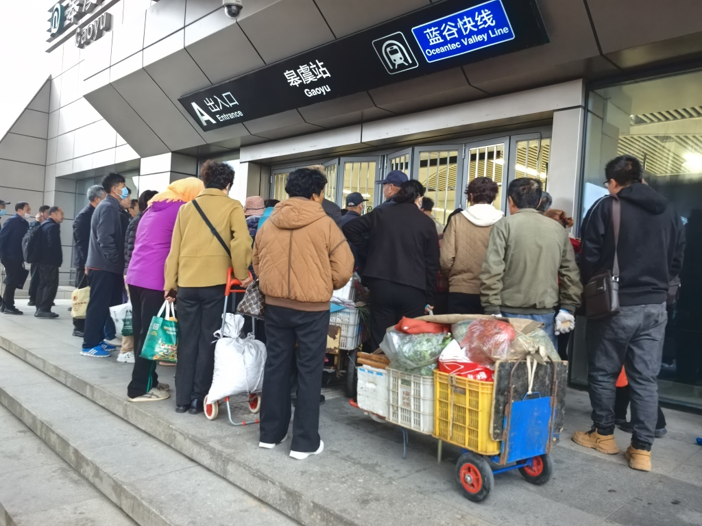 记者了解到,2023年年初随着地铁四号线的运行,不少村民发现通过换乘可以直接到沙子口大集,进城卖菜的村民就多了起来。为了保障通行,青岛地铁的工作人员也提前做好了准备。