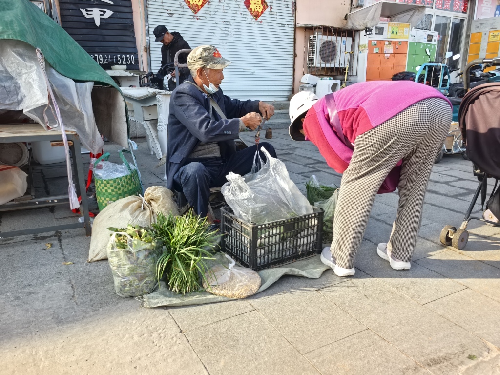 “地铁通了太方便了,以前想都不敢想。”今年70岁的唐大爷说,家里种了几分地,老两口吃不了那么多。只要有时间,他就会摘一点到周边的集市上卖。他们赶集用电动三轮车跑不远,只能到周边几个小的集市。现在农村年轻人少,卖货慢,这些野菜在当地也不稀罕。不过,他们一次只能拉二三十斤,相比于农村大集,这边的集一次能多卖二三十元。