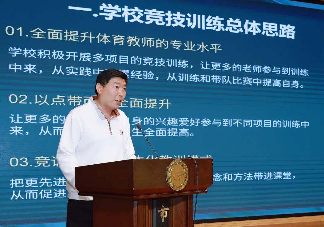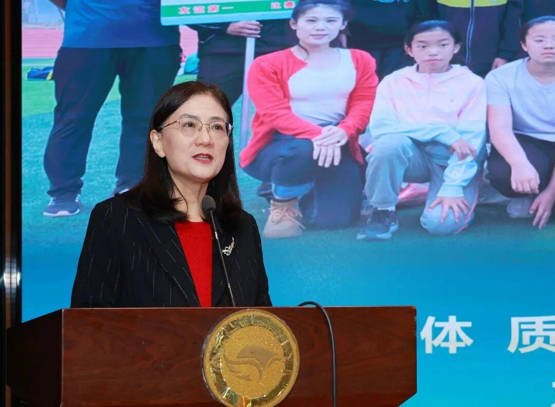区教体局党组书记、局长宫春肯定了体卫艺科和各学校取得的各项有益经验和成绩。她强调,学生体质健康工作是关乎青少年成长的“一把手工程”,必须提高政治站位、高度重视、狠抓落实。各校要进一步加强宣传引导,厚植健康理念,持续优化体育课程设置与体育师资配置,通过跨校交流、教研观摩等形式,互学互鉴、共同提升。体育不仅是增强学生体质的重要途径,更是促进师生精神状态提升、心理健康发展、规则意识培养和意志品质锤炼的关键抓手,要坚持以体育人、久久为功。各校一把手要切实履行第一责任人职责,体育教研组长充分发挥凝聚带动作用,激发学生主动健身自觉,让健康教育覆盖校园全域、惠及全体师生。