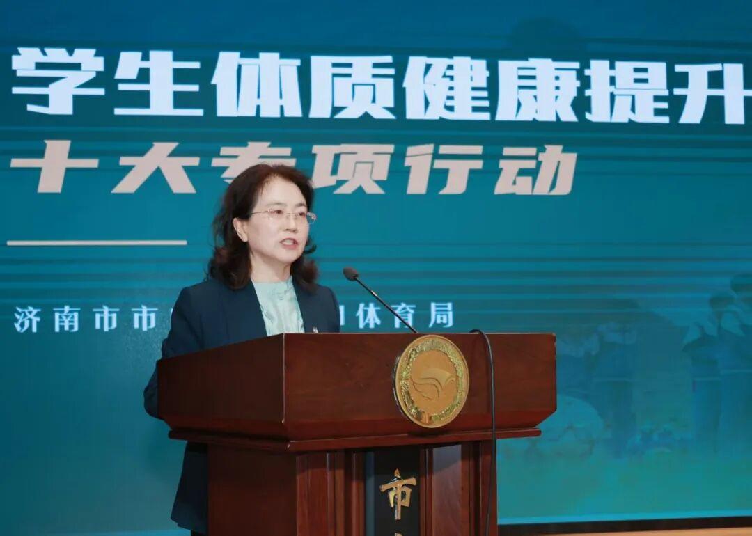 作为济南市首个聚焦学生体质健康提升的区级专项行动方案,会上正式发布《济南市市中区实施学生体质健康提升十大专项行动方案》。市中区教体局党组成员、副局长、区体育事业发展中心主任王鲁明对方案进行解读。她表示,该方案围绕课程提质、阳光体育推进、体质监测优化、近视防控强化、体重管理科学实施、家校协同深化等十个关键方面精准施策,为加快构建科学化、常态化、全覆盖的学生体质健康提升体系,全力营造“人人爱运动、天天强体魄”的良好校园氛围,推动全区学生体质健康水平稳步提升奠定坚实基础。