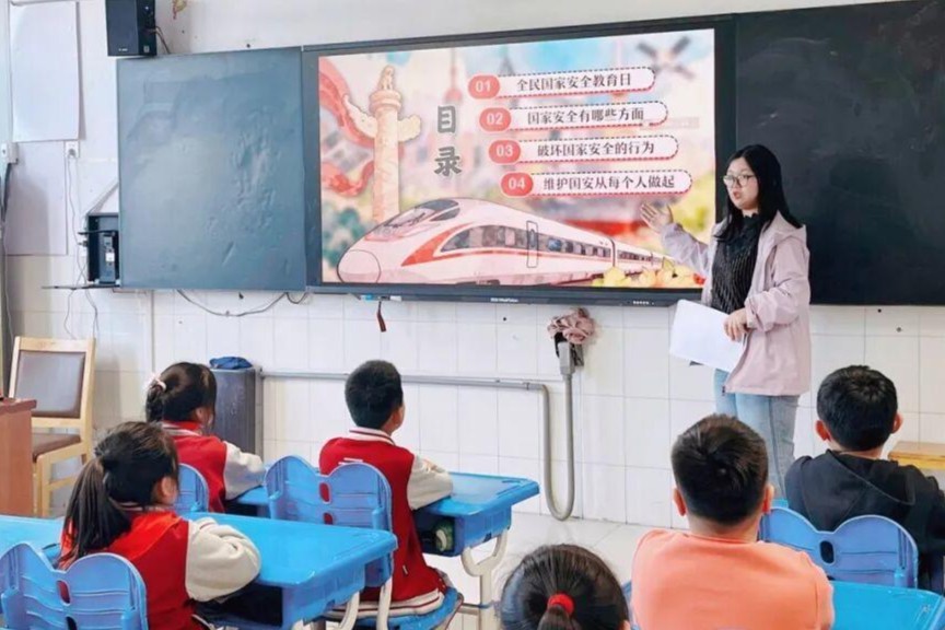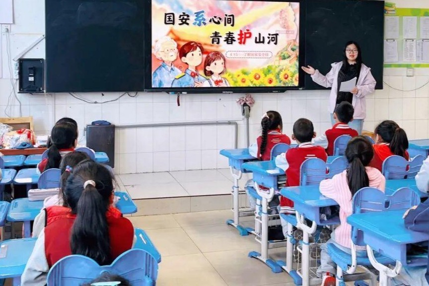 在4月15日全民国家安全教育日临近之际,恰逢学校校园开放月,为深化家校共育内涵,普及国家安全知识,增强学生国家安全意识,济南高新区鸡山小学三年级1班邀请家长代表杨慧走进课堂,以“国安系心间,青春护山河”为主题,为孩子们带来一堂生动实用的国家安全教育课,让国家安全理念扎根童心。