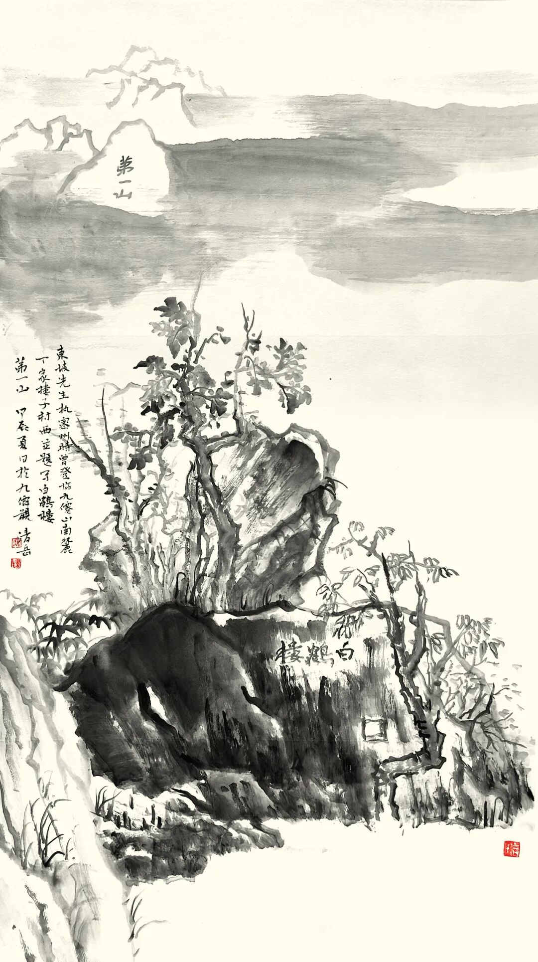 白鹤楼清风图石雨 作