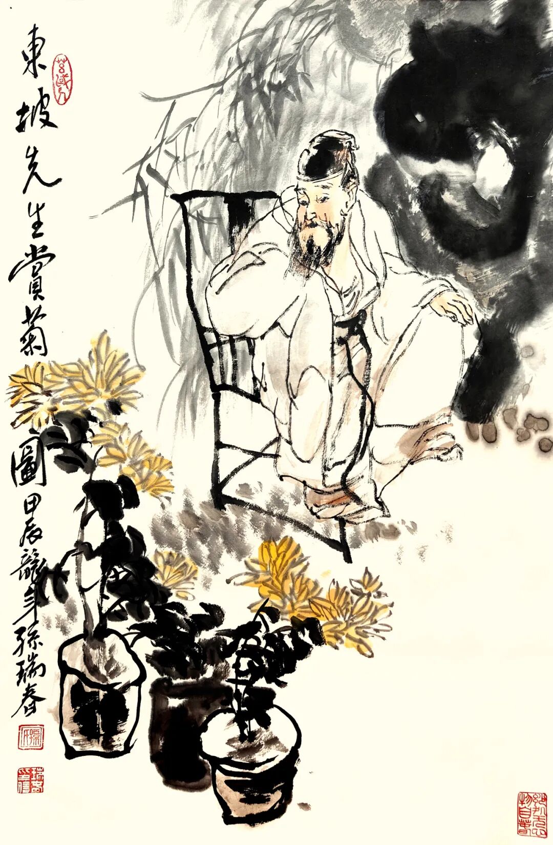 东坡先生赏菊图 孙瑞春 作