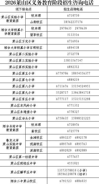 2026年烟台市莱山区学区公布,新生可线上或线下报名